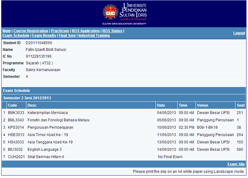 nampak tak??? apa yang kite nampak..jadual kite bertimpa-timpa kot... paling mengujakan..kita tak pernah dapat seat no 1... depan sekali..hhehe sangat teruja... exam bulan 6.. so banyak la jemputan kahwin yang diterima..tapi maaf sebab kite tak dapat hadir..hanya doa dari jauh je..